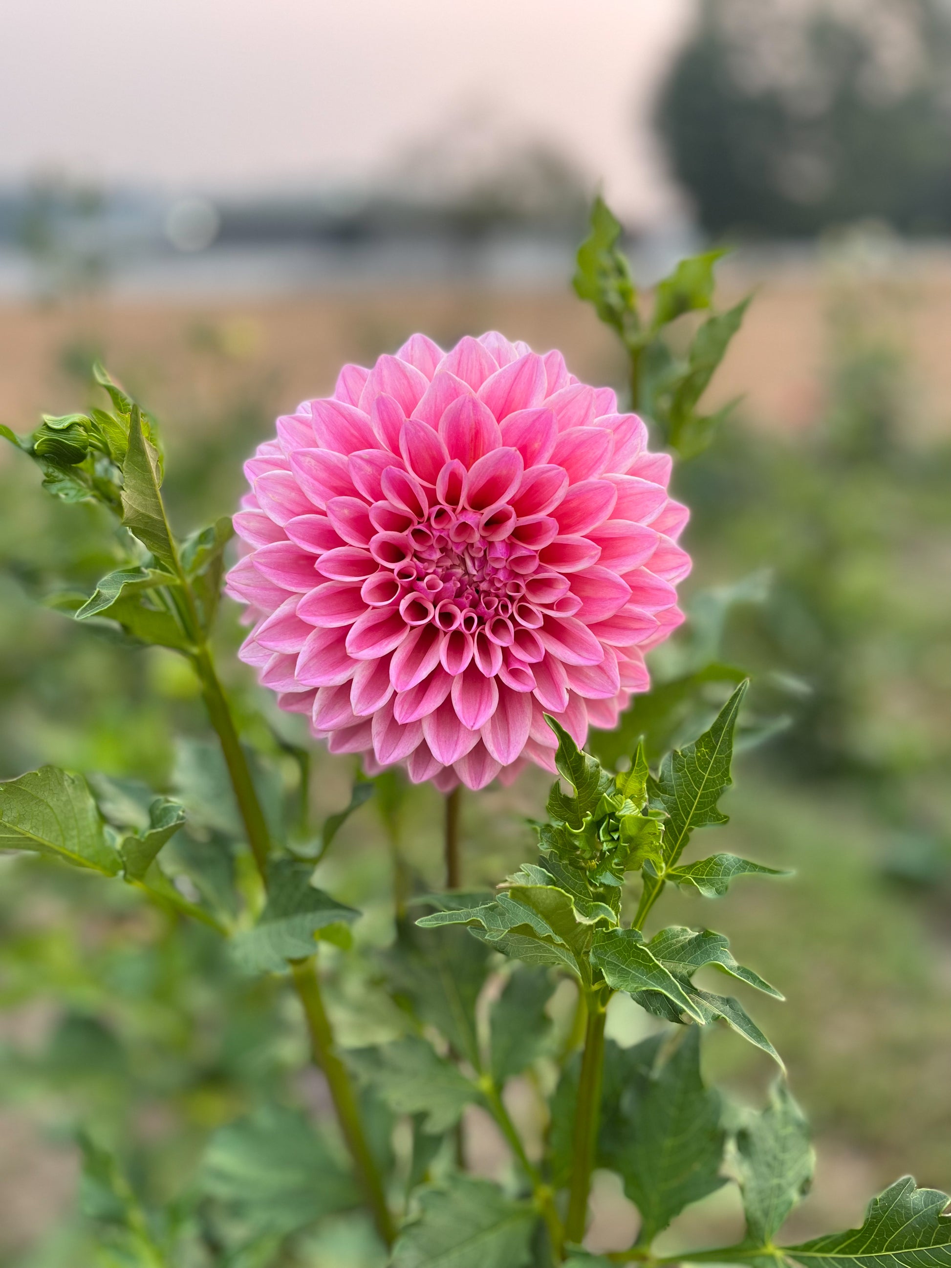 This is truly one of the prettiest pink dahlias you will find! Her tight, uniform petals range from rosy pink to blush pink depending on the growing conditions. These 5” formal decorative-style blooms stand out in a field on a 3 1/2’ plant that blooms early and often.
