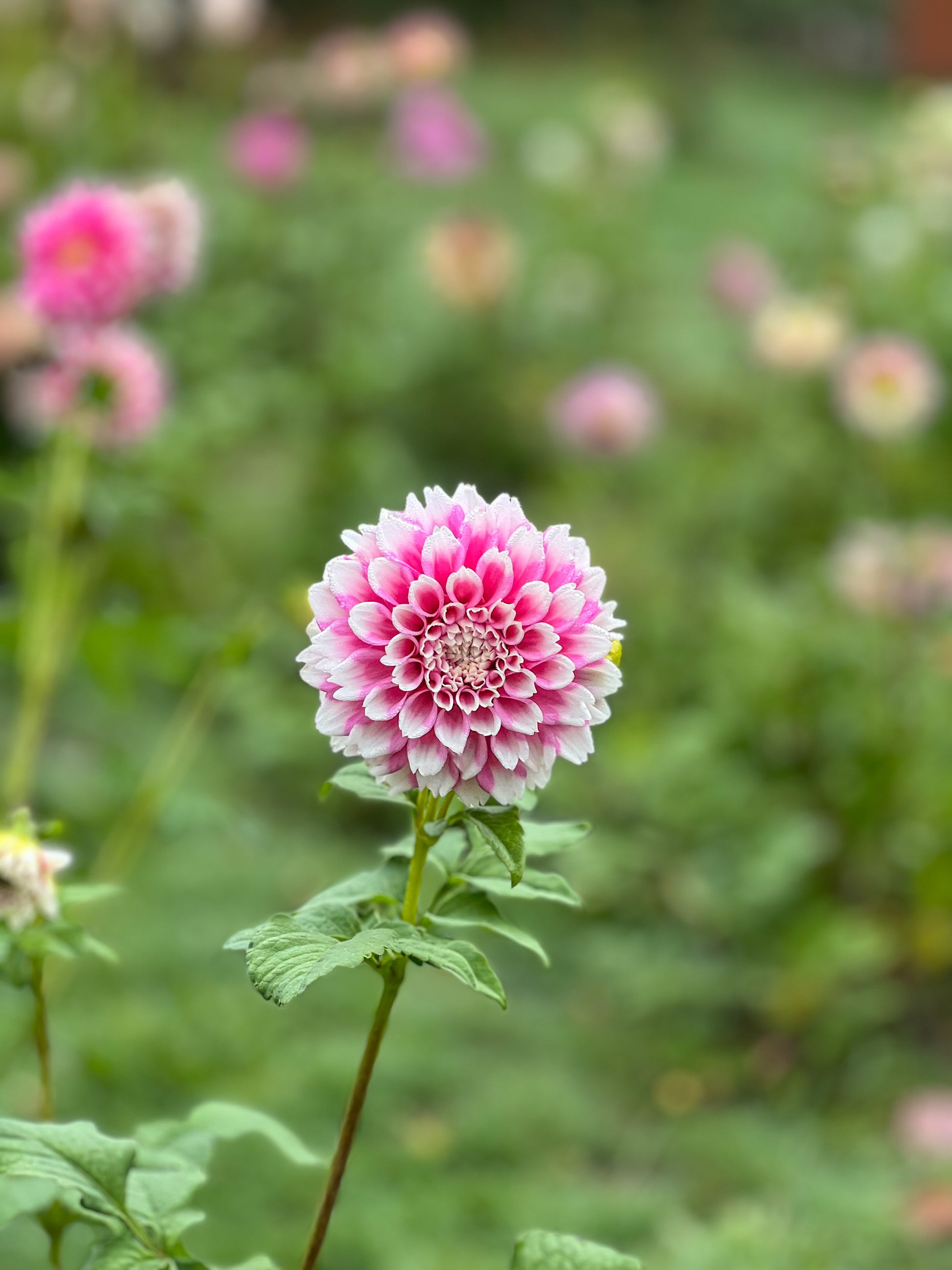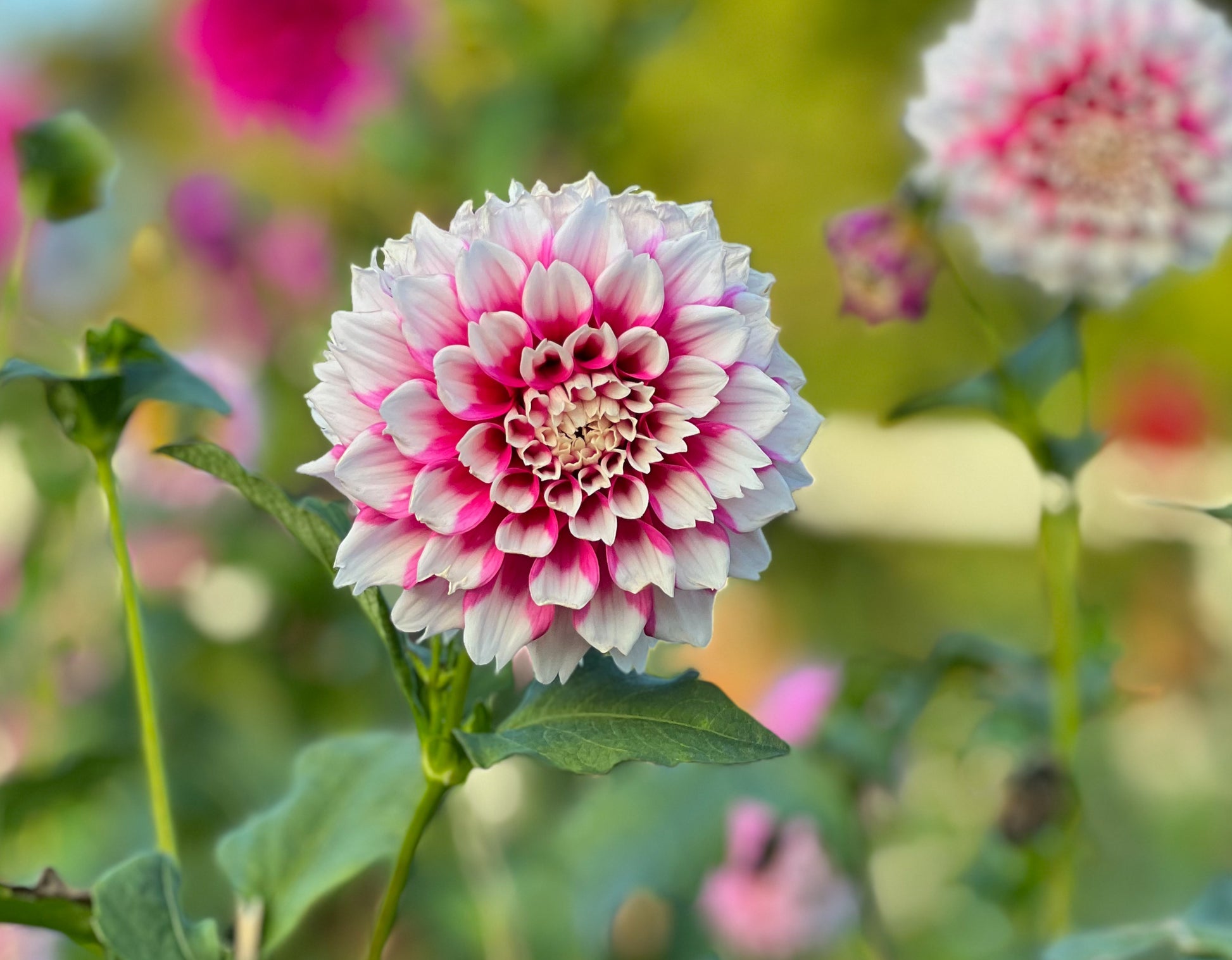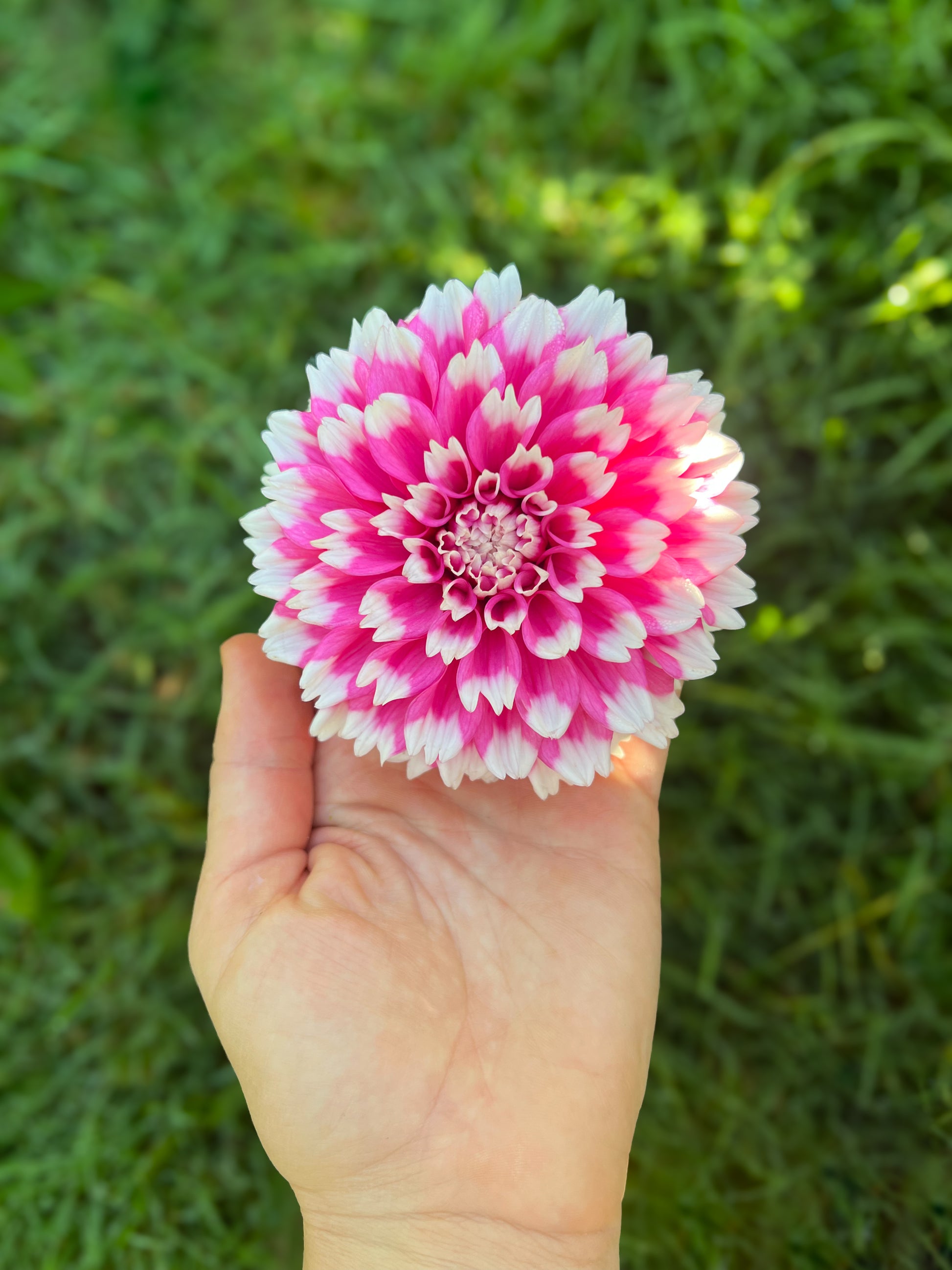Always a fan favorite, Fuzzy Wuzzy is a whole lot of whimsical fun. 3” bright pink petals have slightly lacinated (split) white tips that give this bloom its namesake fuzzy, fringed look. 4’ plant produces many of these cute, informal decorative blooms throughout the season. Please note, all bi-colored varieties have potential to produce solid blooms throughout the season.