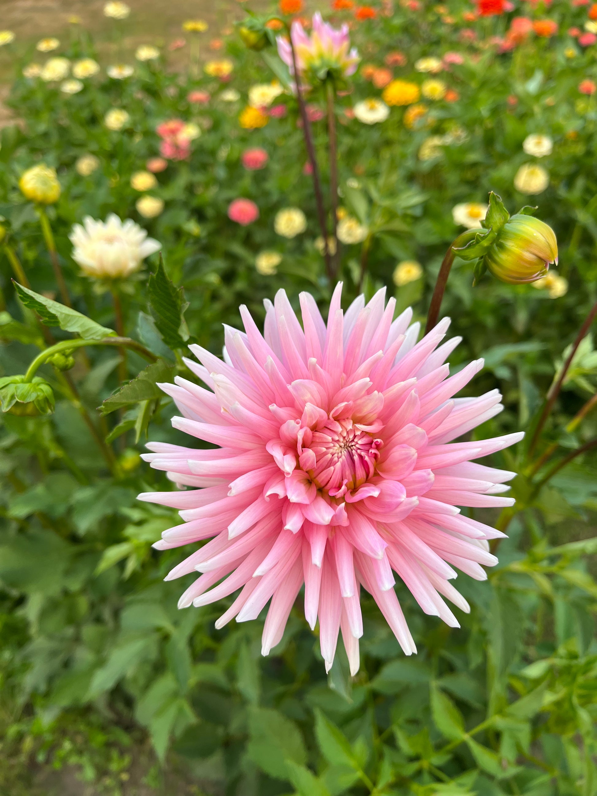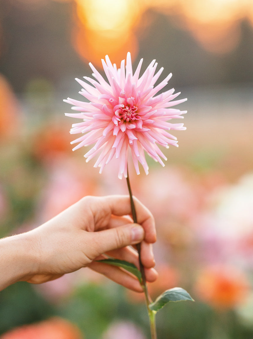 These lovely light pink blooms can reach up to 6". Their semi cactus form adds texture and whimsy to bouquets, and sturdy stems for cutting make this 4' plant a great addition to your garden.
