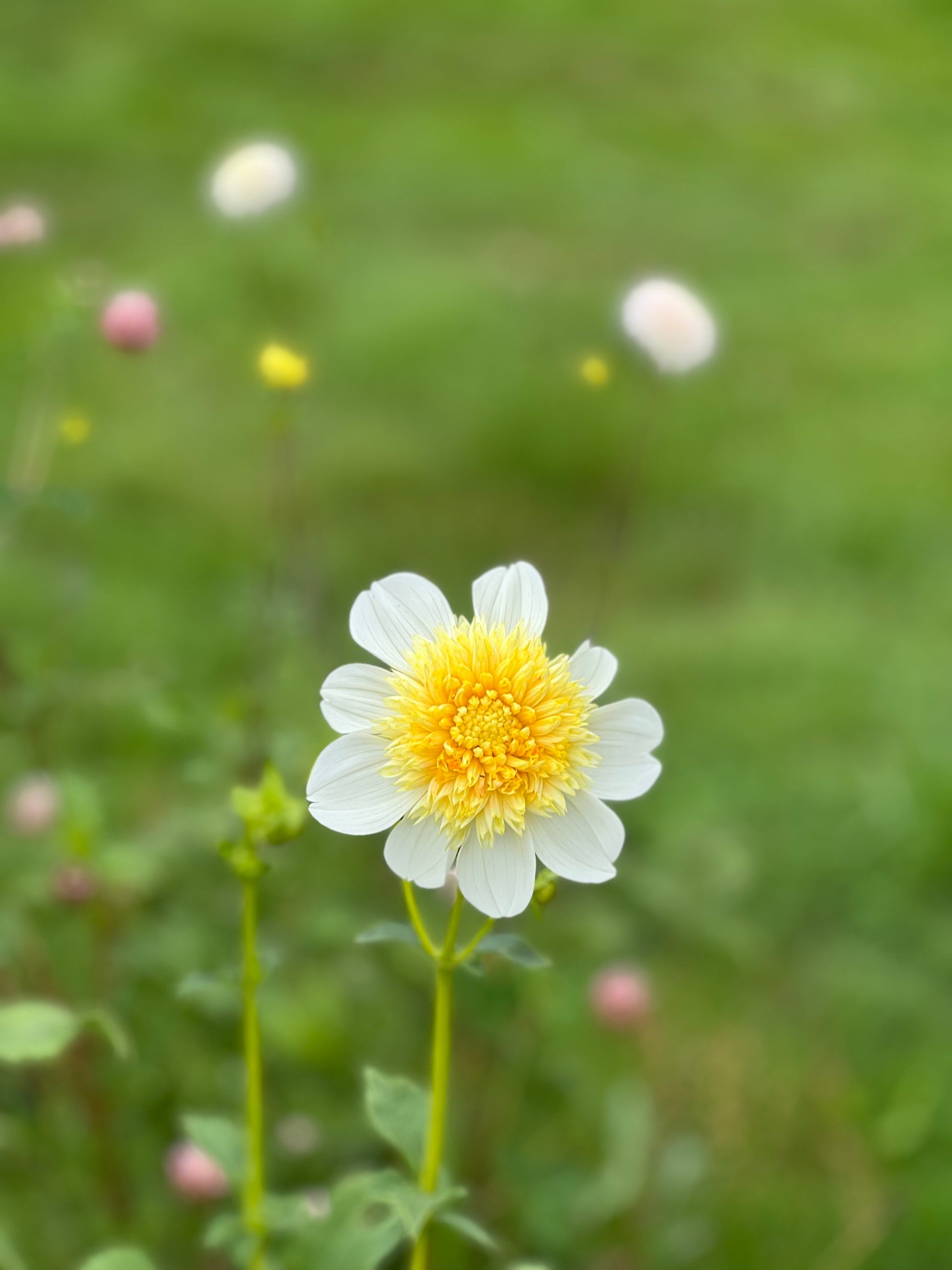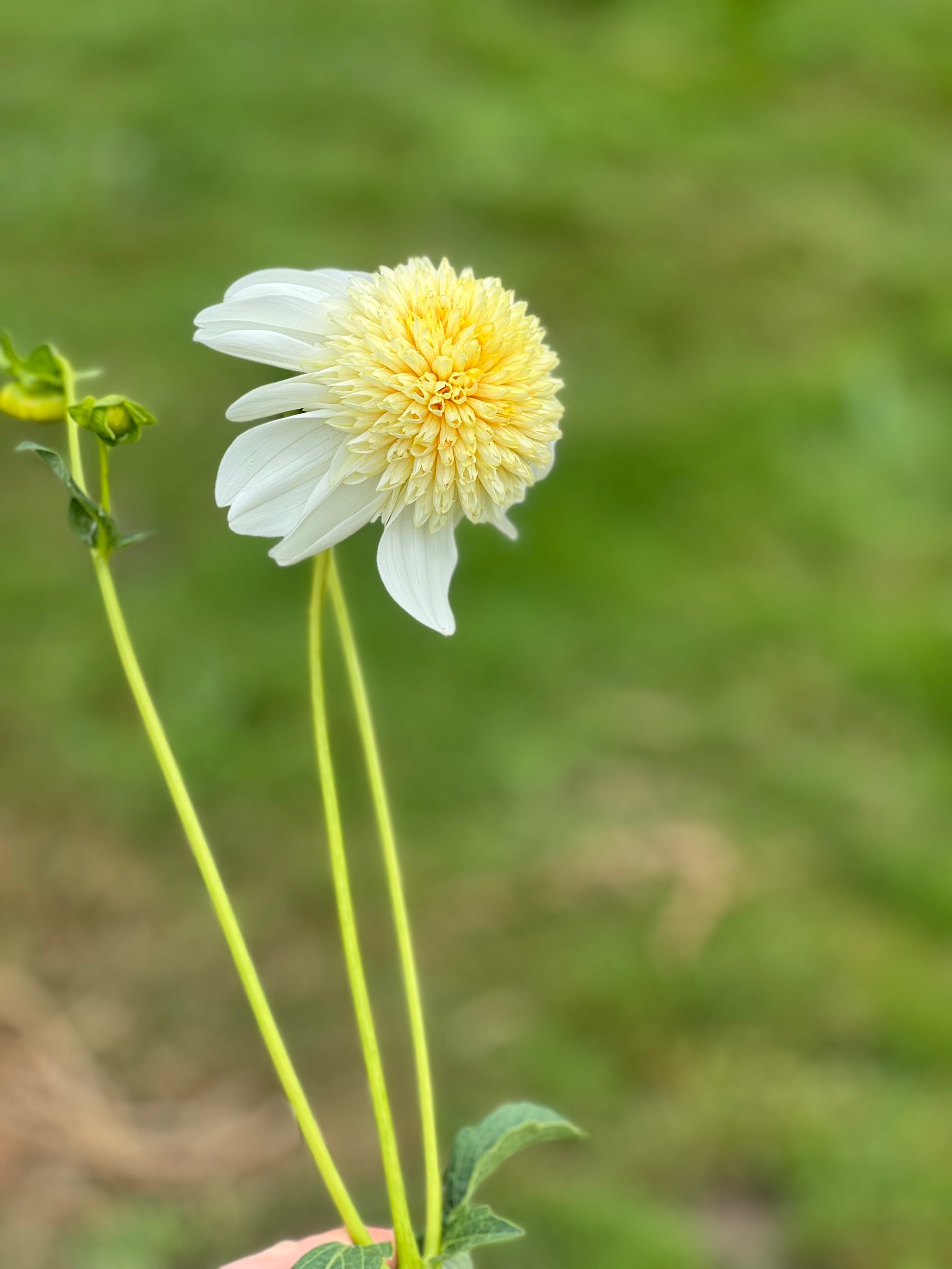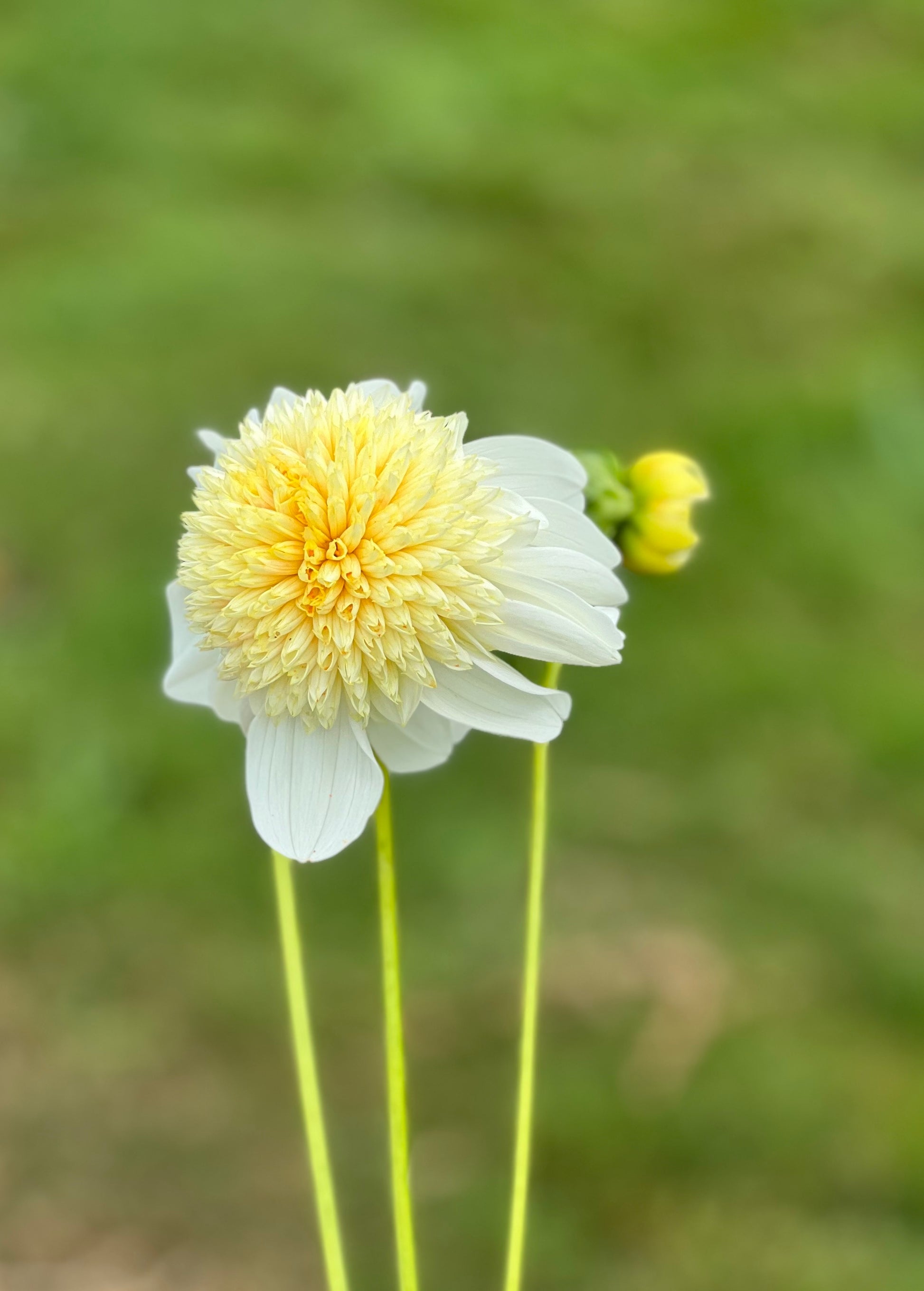 This unique anemone style dahlia is sure to add charm to your garden and bouquets. The bloom measures 3” to 4” and features a single row of white petals encircling an ivory center of fluffy florets.