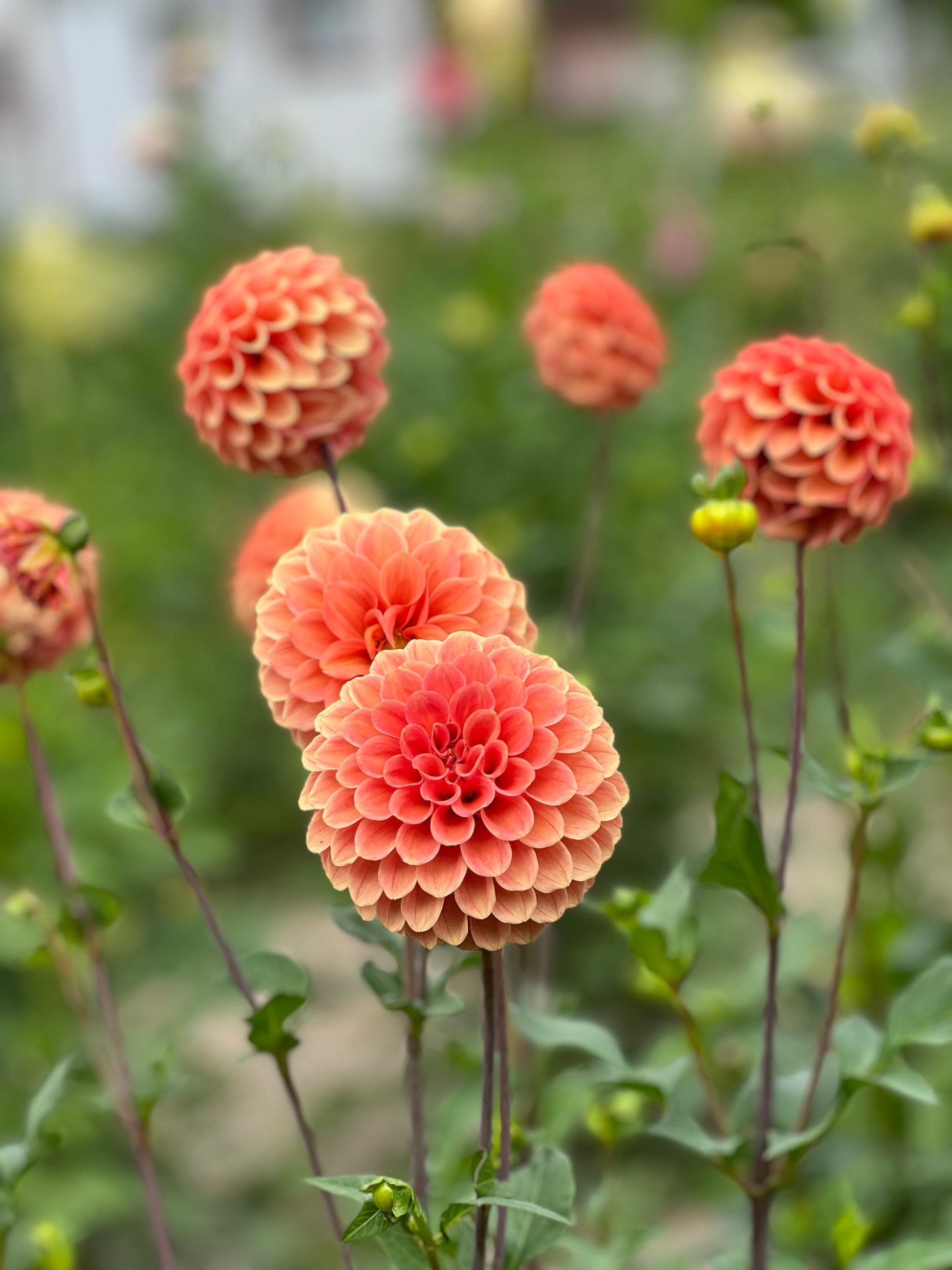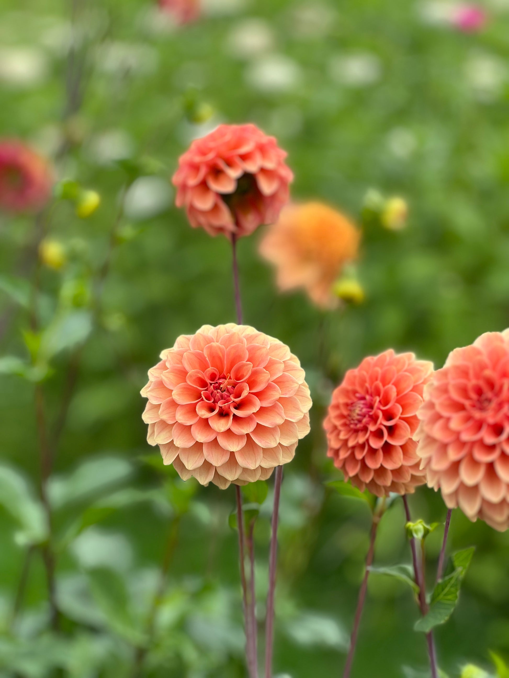 This 2” to 3” mini ball dahlia is one I reach for again and again! The perfect dainty peach bloom, it produces loads off a 4’ plant. One of the most versatile dahlias I’ve grown - she just seems to fit well with everything!