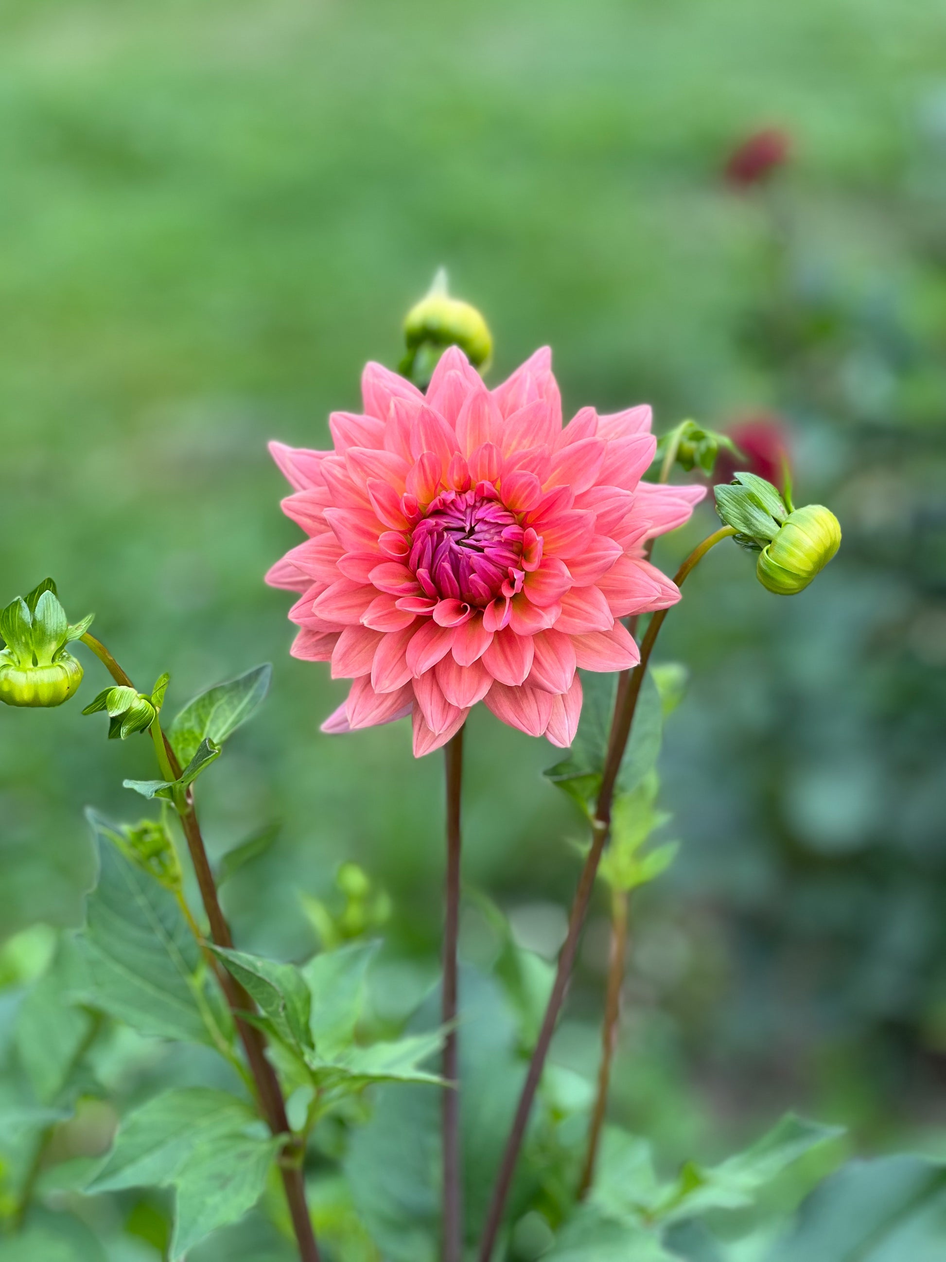 These stunning, 4” semi-cactus blooms are a uniquely elegant salmon color with dainty petals. The plants may only reach 3.5' high, but they make up for it in abundant blooms and great, sturdy stems.